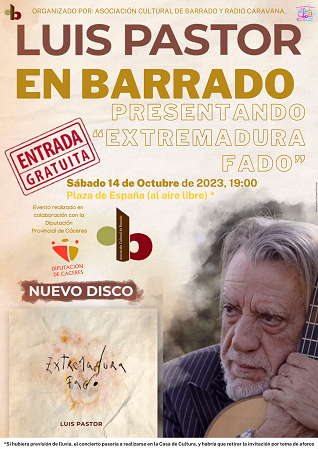 Dentro del proyecto "EmBarrArte2023" ofreceremos durante el fin de semana de Octubre de 2023 varios conciertos, en lo que será un variado finde musical que remataremos con el concierto gratuito de Luis Pastor.En cuanto tengamos el detalle de los diferentes conciertos lo pondremos por aqui, por ahora os dejamos el cartel del concierto de Luis Pastor para el que contamos con la colaboración de Diputación de Caceres que nos ayuda con una subvención monetaria para realizar estos actos culturales.